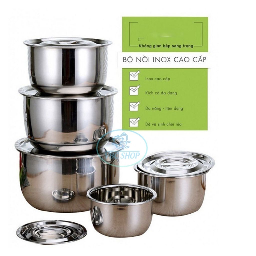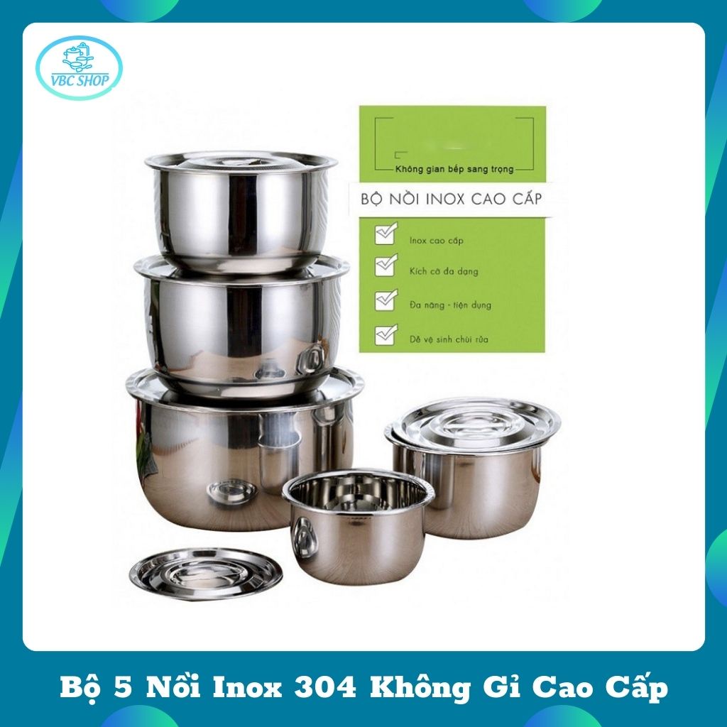 Bộ 5 Nồi Inox 304 Không Quai Không Gỉ Cao Cấp, Bộ 5 Nồi Dùng Đa Năng Trên Mọi Loại Bếp