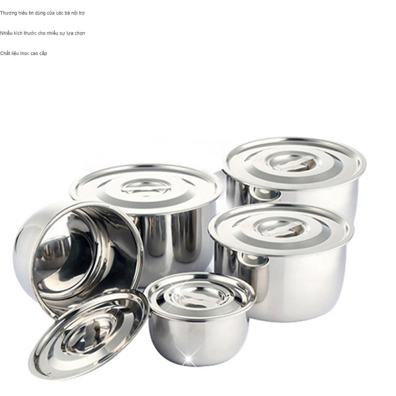Nhà cửa & Đời sống > Dụng cụ nhà bếp > Nồi || Bộ 5 nồi Inox 5 kích thước khác nhau, không quai cất dọn gọn gàng, dùng được cho tất cả các loại bếpCòn hàng