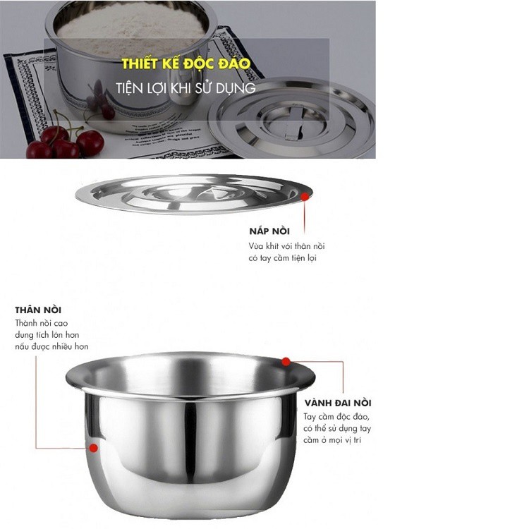 - Với chất liệu inox cao cấp không ra rỉ sét, không dễ móp méo, sáng bóng dày dặn.