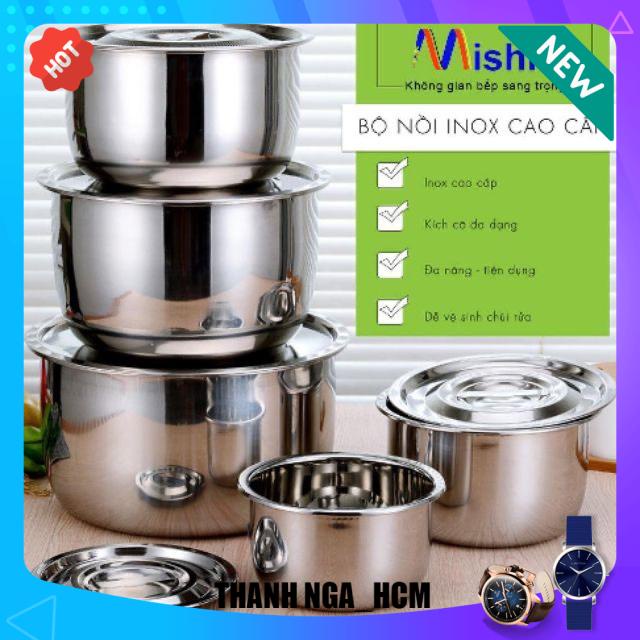Bộ 5 Nồi Inox Cao Cấp 304 Không Gỉ Dùng Được Cho Tất Cả Mọi Loại Bếp