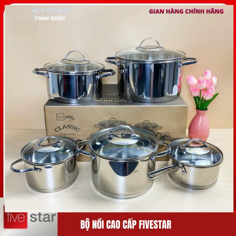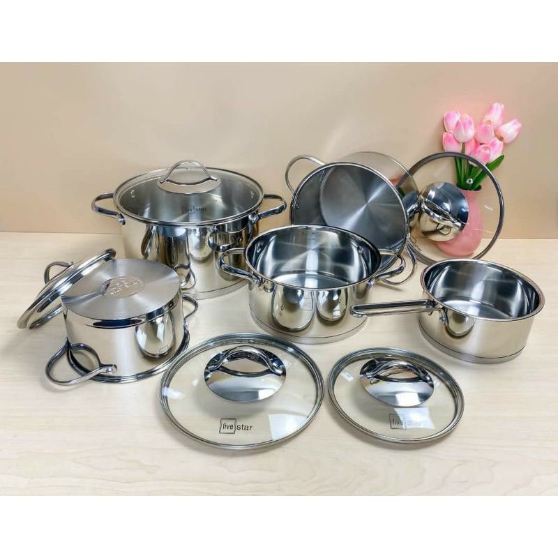 Nhà cửa & Đời sống > Dụng cụ nhà bếp > Nồi || Bộ 5 nồi Inox cao cấp Fivestar Oval Kitchi nắp kính [ BẢO HANG 5 NĂM]Còn hàng