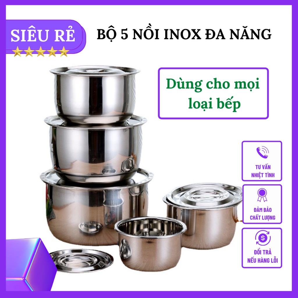 Bộ 5 Nồi Inox Kích Thước 16-24 Cm Dùng Được Cho Cả Bếp Từ
