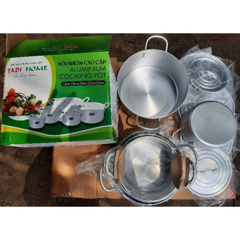 Nhà cửa & Đời sống > Dụng cụ nhà bếp > Nồi || Bộ 5 nồi nhôm Tabi Home cao cấp( kích thước 16-24cm) dùng cho bếp ga,bếp hồng ngoạiCòn hàng