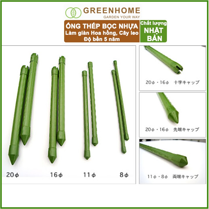 Ống thép bọc nhựa Nhật Bản - độ bền 5 năm - dùng làm giàn đỡ hoa Hồng, cà chua, giàn cho dây leo✅ ĐẶC ĐIỂM NỔI BẬT Ống thép bọc nhựa Nhật Bản: