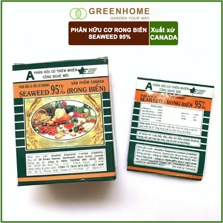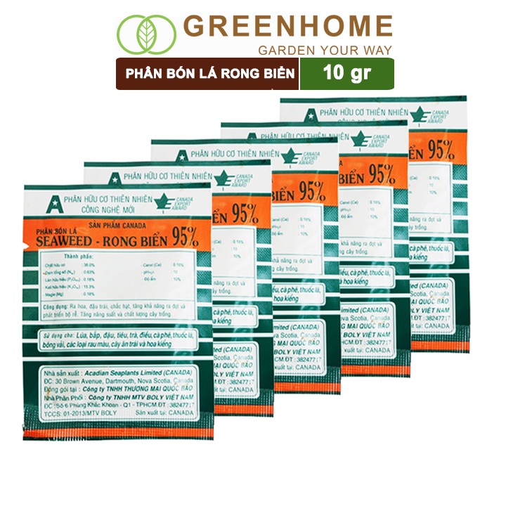 Giới thiệu Bộ 5 Phân bón lá Seaweed, rong biển 95%, gói 10gr, hữu cơ kích thích ra hoa, chống rụng hoa |Greenhome