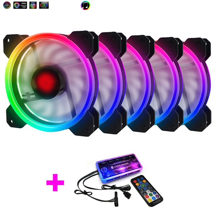 Máy tính & Laptop > Linh Kiện Máy Tính > Quạt và Tản Nhiệt || Bộ 5 Quạt Tản Nhiệt, Fan Case Coolmoon V2 Led RGB Dual Ring - Kèm Bộ Hub Sync Main, Đổi Màu Theo NhạcCòn hàng