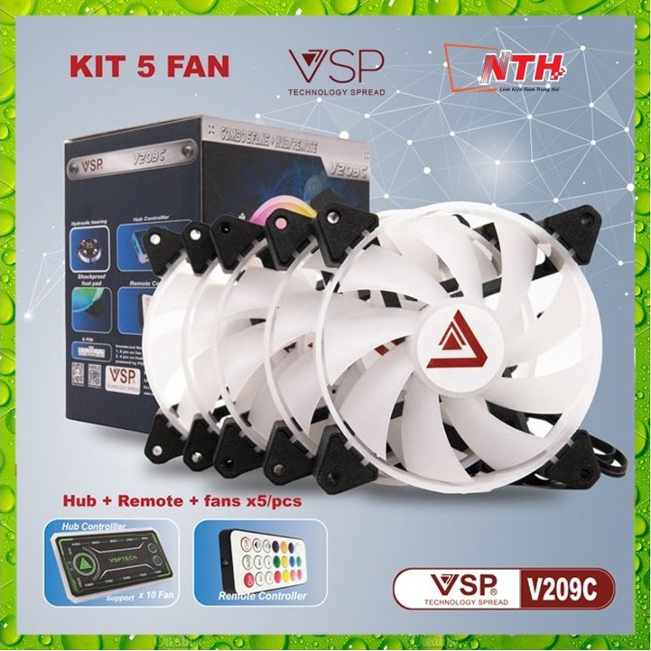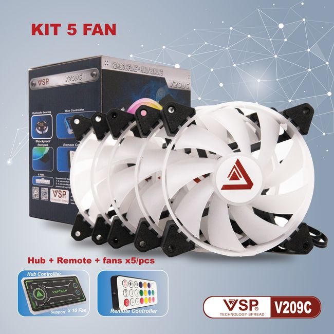 ✔️ BỘ KIT 5 FAN VSP V209B LED RGB ( FAN LÀM MÁT VÀ ĐẸP CHO VỎ MÁY TÍNH )• BỘ KIT V209C LED RGB GỒM: 5 FAN LED RGB + 1 REMOTE ĐIỀU KHIỂN + HUB 10 CHÂN CẮM FAN