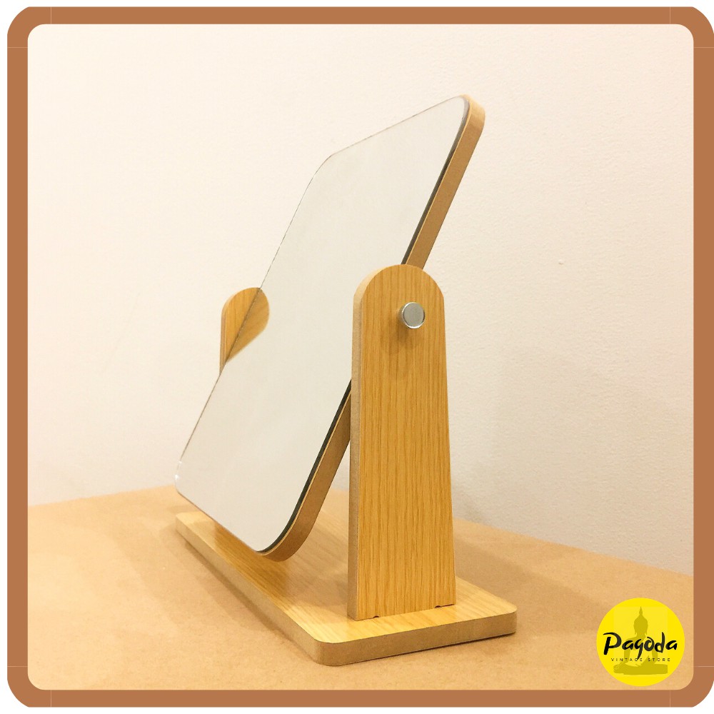 (5 sao lượt đánh giá) Gương để bàn vân gỗ cỡ LỚN 25x22cm vintage decor (Follow shop để nhận mã giảm giá)