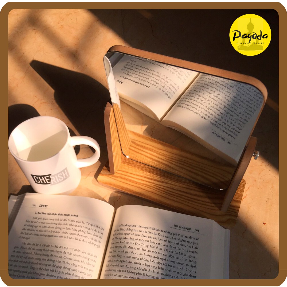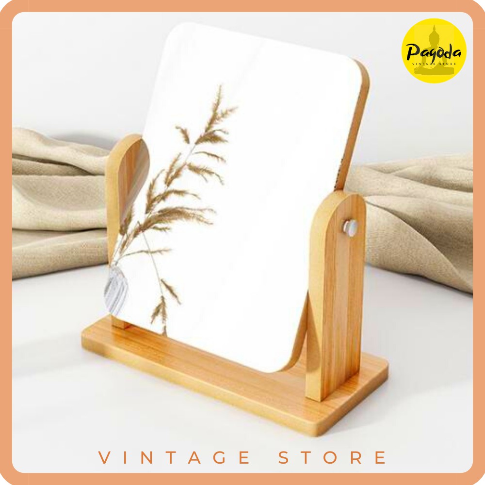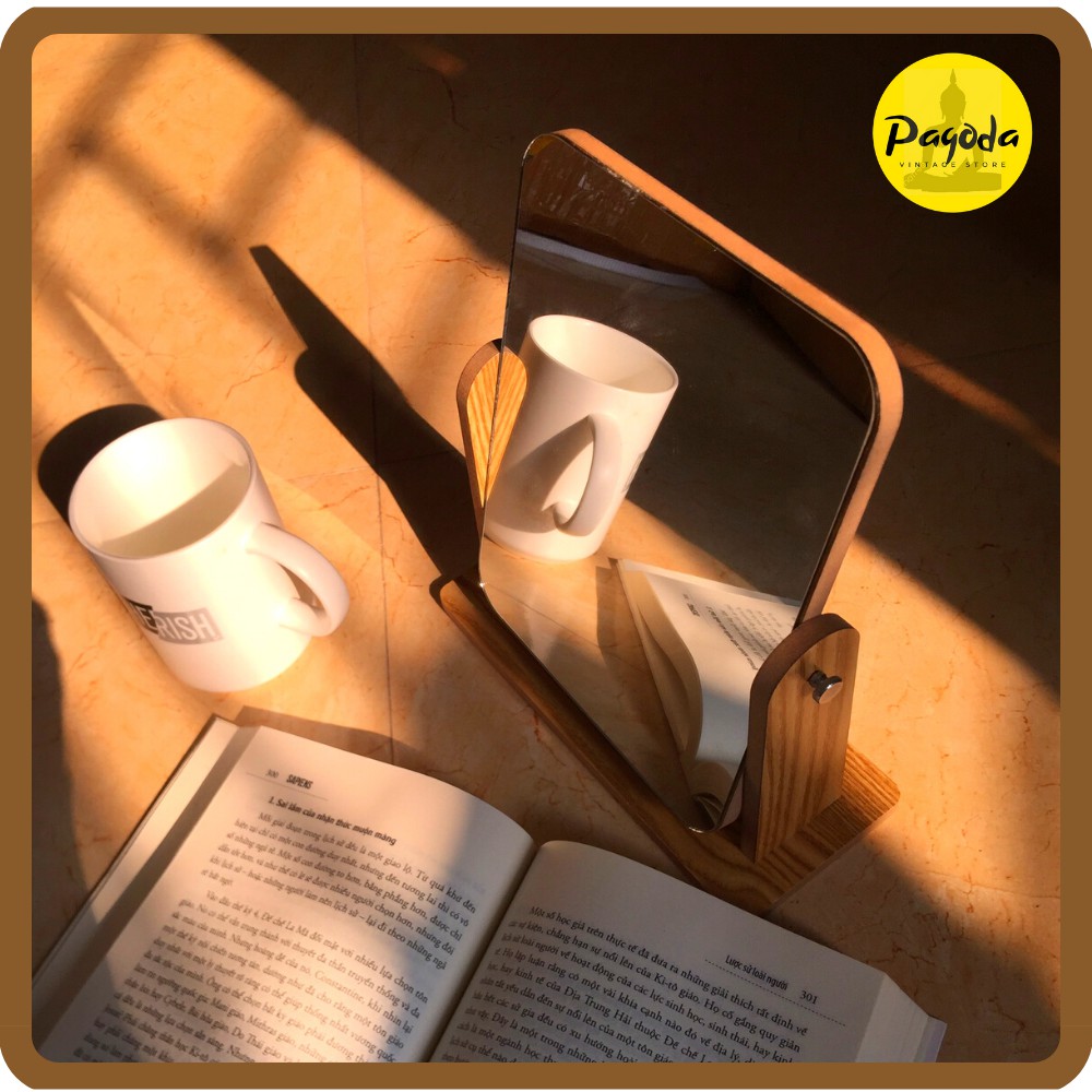 Giới thiệu (5 sao lượt đánh giá) Gương để bàn vân gỗ cỡ LỚN 25x22cm vintage decor (Follow shop để nhận mã giảm giá)