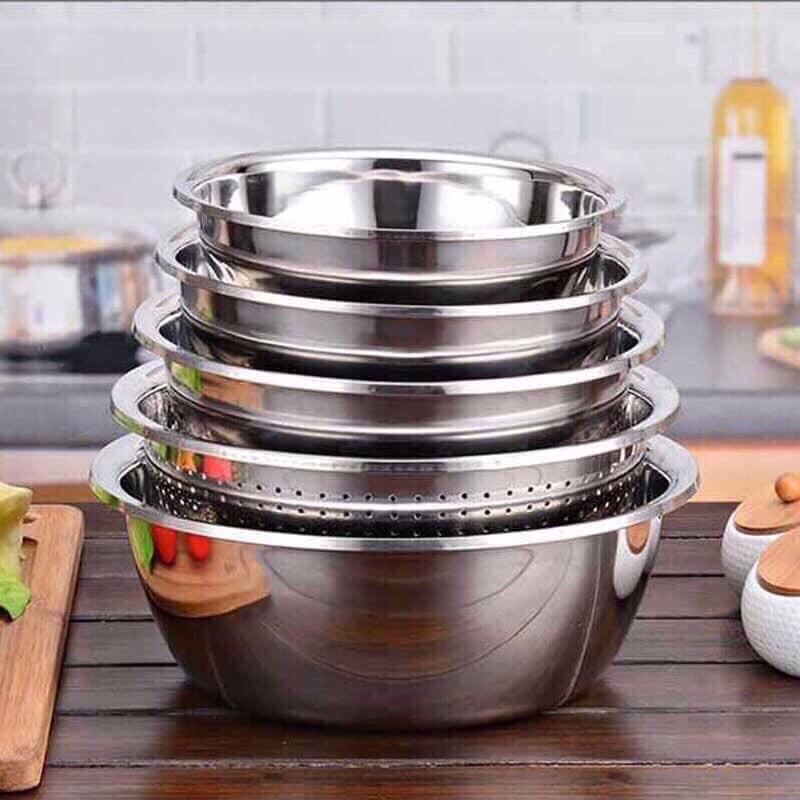Nhà cửa & Đời sống > Dụng cụ chăm sóc nhà cửa > Chậu, xô & gáo nước || Bộ 5 Thau và rổ được làm bằng chất liệu inox cao cấpCòn hàng