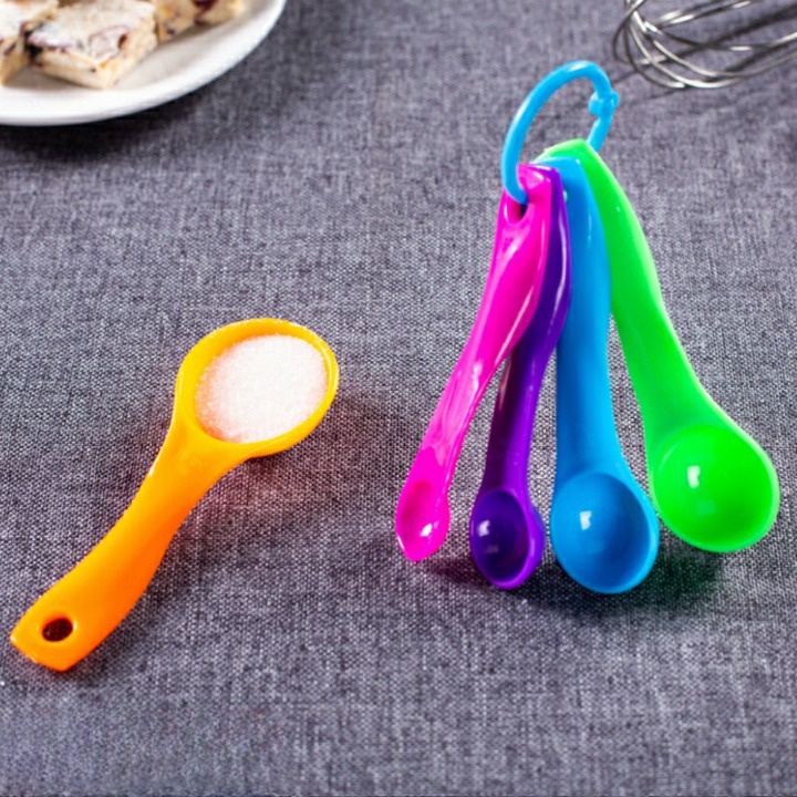 Bộ thìa đong với nhiều màu sắc rực rỡ được làm bằng nhựa, đo theo theo đơn vị ml . Bộ dụng cụ sẽ giúp các baker dễ dàng đong đếm những nguyên liệu lỏng như sữa, bơ, cream và những nguyên liệu vô cùng nhỏ như hương vani, màu thực phẩm một cách chính xác nhất, để hương vị bánh thơm ngon nhất.