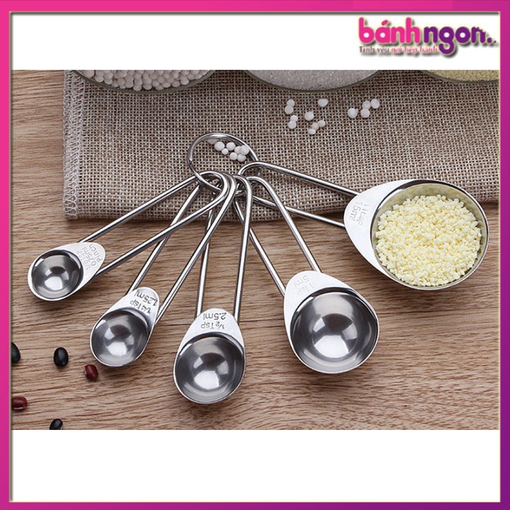 Bộ thìa đong nằm trong số những dụng cụ làm bánh cơ bản cần phải có của mỗi bạn muốn làm bánh. Chiếc bánh thơm ngon đúng vị có thể thành công hay không một phần dựa vào tỷ lệ nguyên liệu của chính xác đến đâu chính xác đến đâu đấy ạ. Hôm nay Abby giới thiệu đến bạn bộ thìa đong #5chiếc được làm bằng inox bền đẹp chắc chắn.