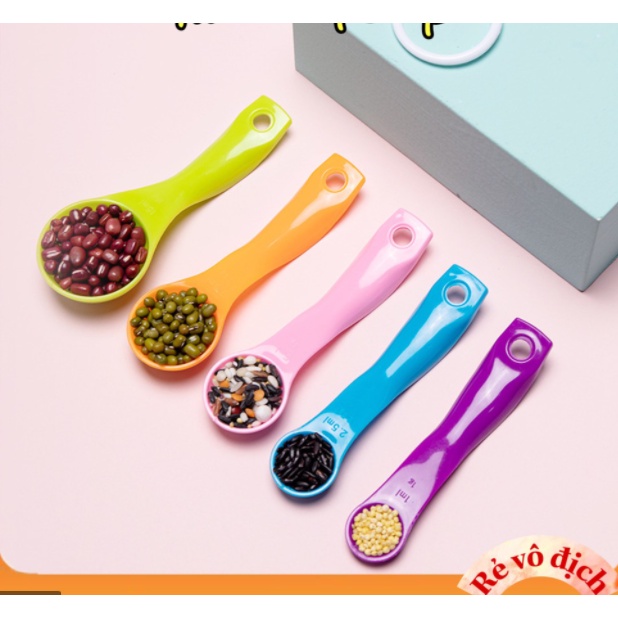 Bộ 05 muỗng đo lường bằng nhựa cao cấp thuận tiện cho bạn đo lường chính xác nguyên liệu để chế biến thức ăn