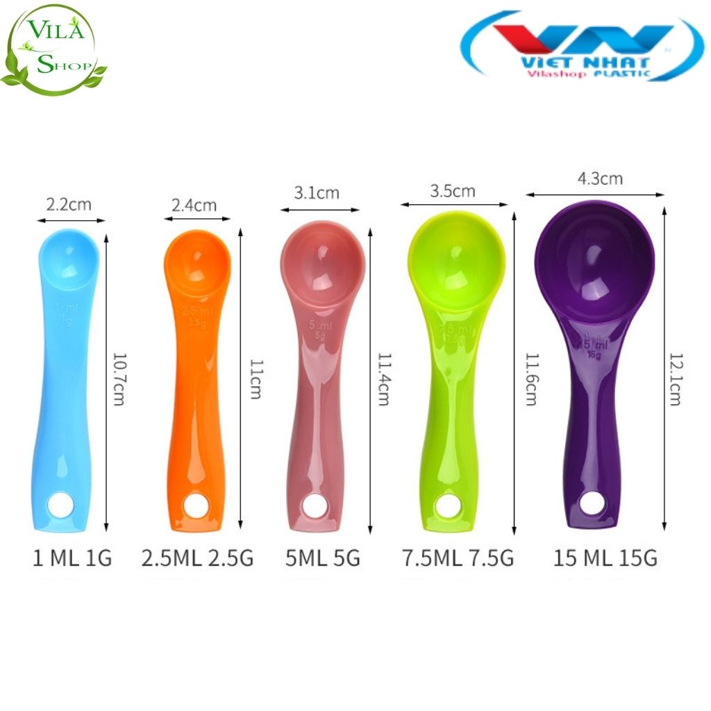 Bộ 05 muỗng đo lường bằng nhựa cao cấp thuận tiện cho bạn đo lường chính xác nguyên liệu để chế biến thức ăn