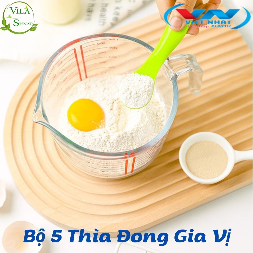 Bộ 5 Thìa Đong, Muỗng Đong Nhà Bếp Đo Lường, Định Lượng Gia Vị, Bột, Sữa Bằng Nhựa PP An Toàn