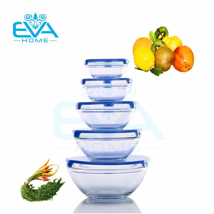 Bộ 5 thố thủy tinh ( tô thủy tinh ) nắp nhựa không chỉ đơn giản giúp bảo quản món ăn được tốt hơn mà còn giúp món ăn trở nên đẹp mắt vf gian bếp thêm sinh động hiên đại.
