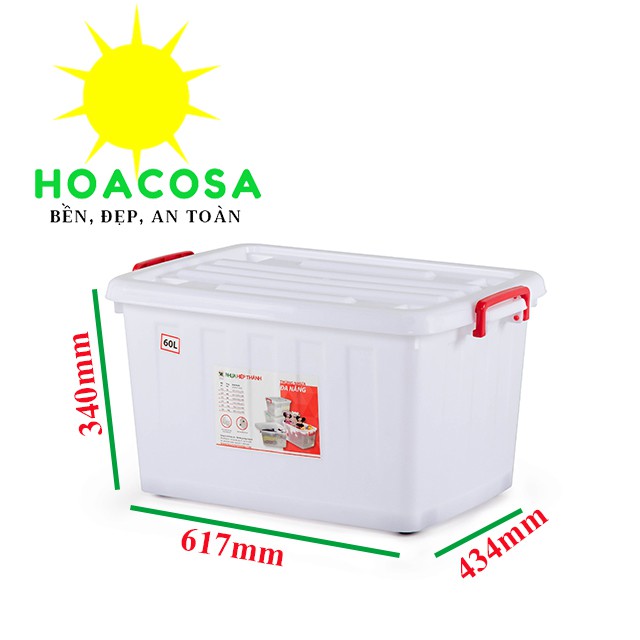 Thùng nhựa đa năng 60 lít hay hộp nhựa đa năng cỡ nhỏ được làm từ nhựa PP nguyên sinh. Đây là sản phẩm rất thông dụng dùng để đựng đồ dùng loại nhỏ, đồ linh tinh ít khi dùng đến trong gia đình hay đựng thực phẩm ( rau củ, hải sản, …) tại các vựa rau, vựa hải sản hay tạp hóa…Thùng được sản xuất bởi công ty Nhựa Hiệp Thành, công ty hàng đầu về nhựa Gia Dụng tại Việt Nam nên khách an tâm về xuất xứ và chất lượng sản phẩm ạ.
