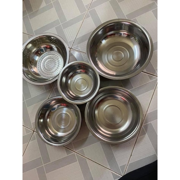 Nhà cửa & Đời sống > Bộ đồ bàn ăn > Tô || Bộ 5 tô inox các cỡ từ to đến nhỏ 5 kích thước (4 tô 1 rổ)Còn hàng