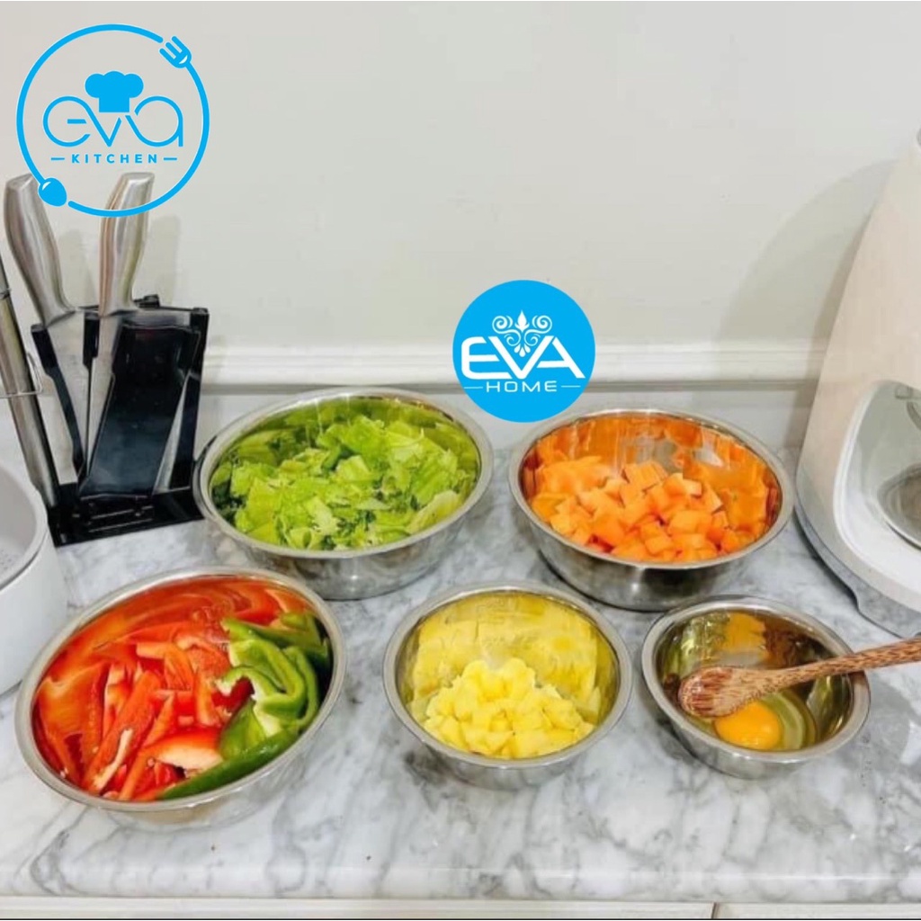 - Sản phẩm gồm : 5 Thau inox gồm 5 cỡ từ nhỏ đến lớn