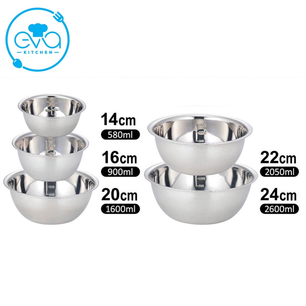 Bộ 5 Tô Inox Xuất Nhật Gồm 5 Size Và Có Vạch Chia Đo Lường Cao Cấp M3556