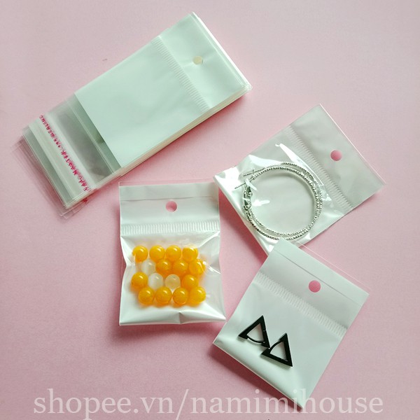 Nhà cửa & Đời sống > Dụng cụ chăm sóc nhà cửa > Túi nilon & túi rác || Số 5 - túi opp nilong màng trắng có lỗ treo và keo dán mép - nami houseCòn hàng