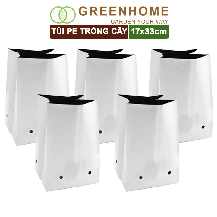Bộ 5 Túi PE trồng cây, 17x33cm, 2 lớp, chống UV tiện lợi, độ bền 1,5 năm, trồng rau, hoa, dâu tây |Greenhome