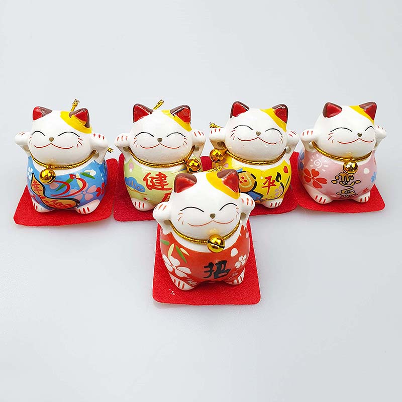 - Bộ ngũ Mèo Thần Tài thích hợp để tại bàn học, bàn làm việc hoặc trên taplo xe hơi.