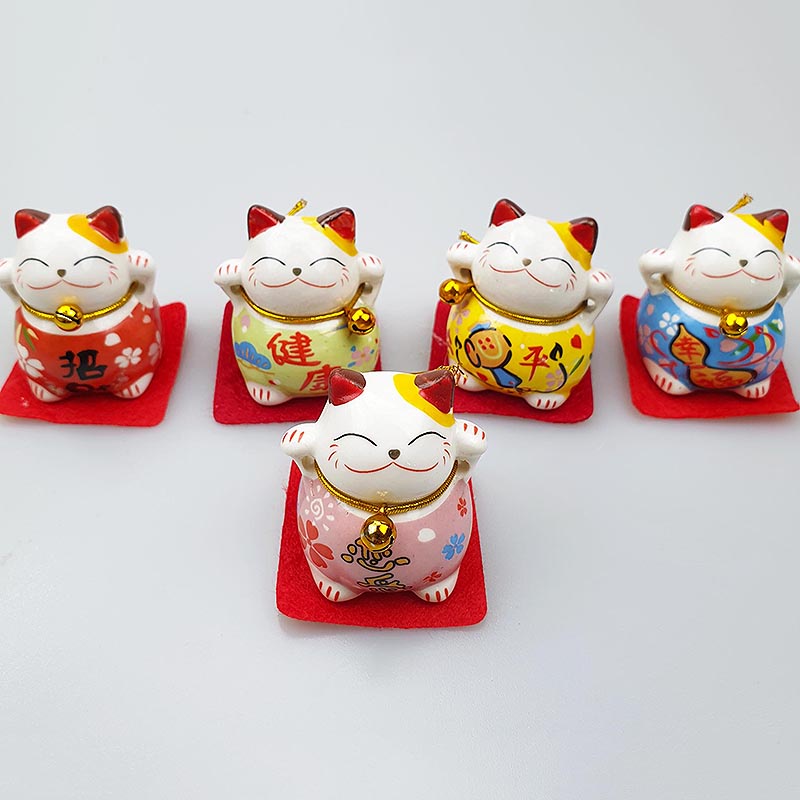 - Chất liệu : Mèo thần tài được làm bằng sứ phủ men sáng bóng
