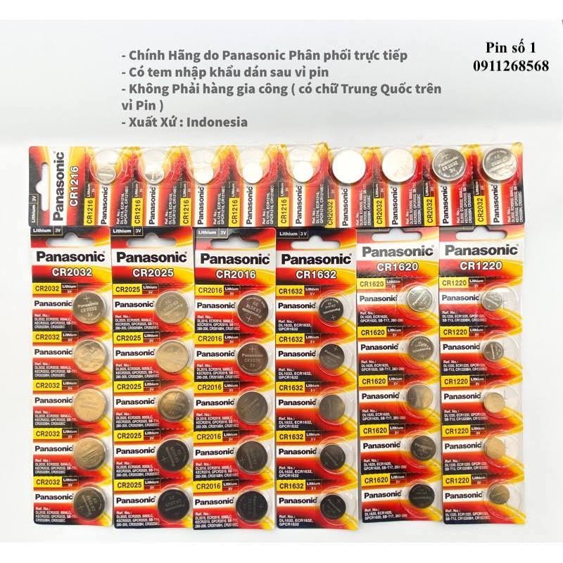 5 viên pin 3V Lithium PANASONIC CR2032 CR2025 CR2016 CR1216 CR1220 CR1616 CR1620 CR1632 CR2450 CHÍNH HÃNG