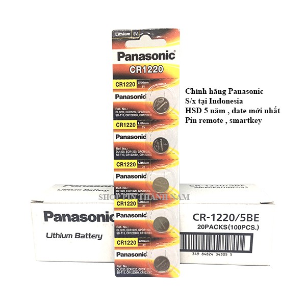Pin CR1220 Panasonic Lithium 3 volt- Hàng chính hãng , có tem của Panasonic Việt Nam dán sau mỗi vỉ pin