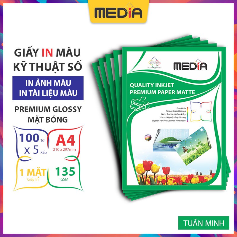 Giới thiệu Bộ 5 Xấp Giấy In Màu Media 1 Mặt Mờ (Matte) A4 (21 x 29.7cm) 130gsm 100 Tờ x 5