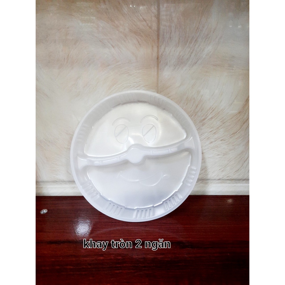 50 cái Khay nhựa tròn 1 ngăn, 2 ngăn, 3 ngăn sử dụng cho thố giấy 750ml, 1000ml