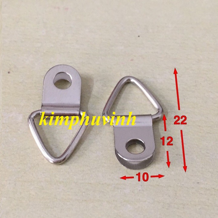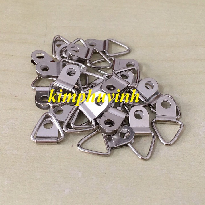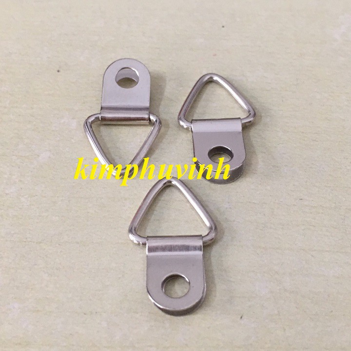 - Móc treo tranh có cấu tạo khá đơn giản gồm một khoen treo tam giác và 1 mãnh sắt hình chữ D có khoét lỗ tròn ở giữa để khoan vít liên kết với khung tranh