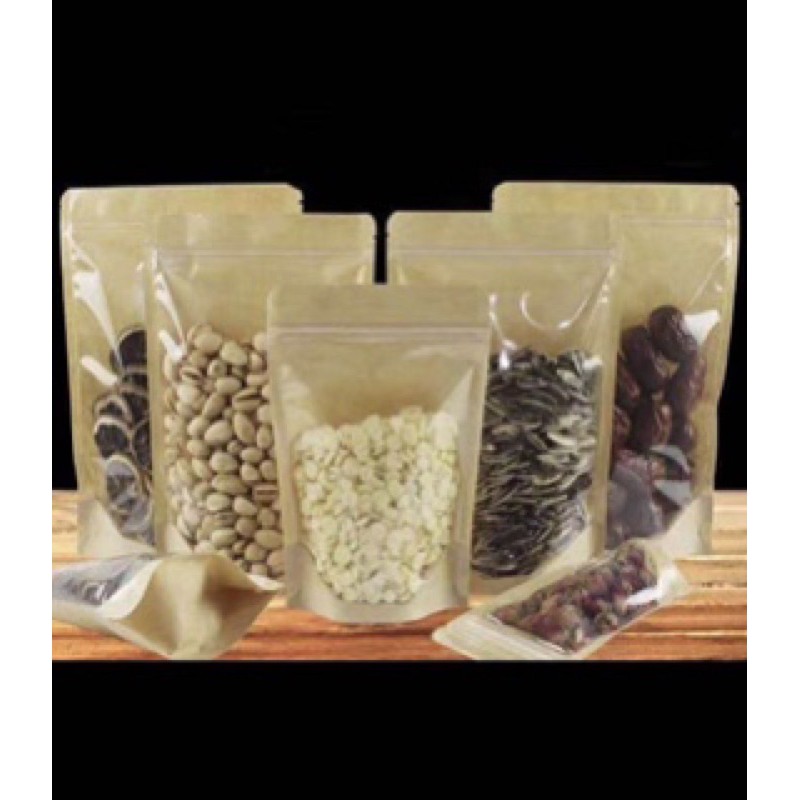 50 cái túi zip giấy nâu 1 mặt trong 1 mặt giấy có nhiều cỡ để lựa chọn dùng đựng bánh kẹo hạt