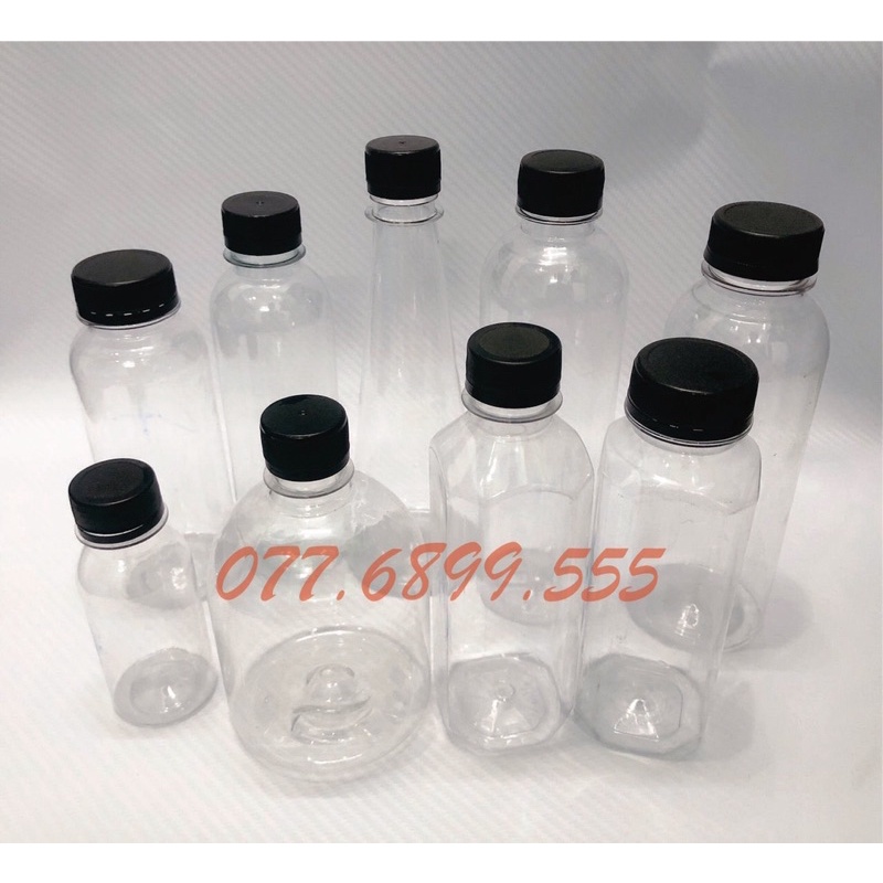 Nhà cửa & Đời sống > Bộ đồ bàn ăn > Bình nước & phụ kiện || 50 Chai nhựa nắp đen tròn 330ml 500mlCòn hàng