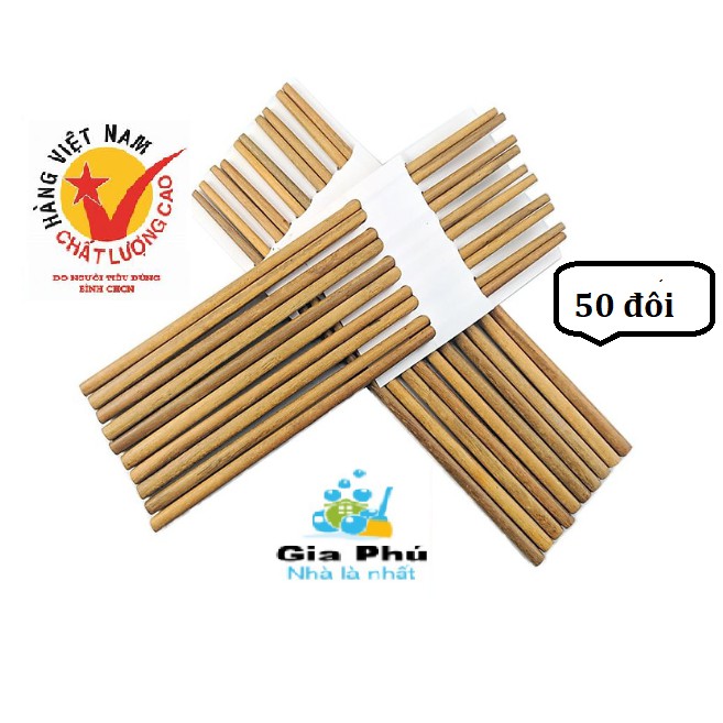Bộ 50 đôi đũa gỗ cao cấp Gia Phú