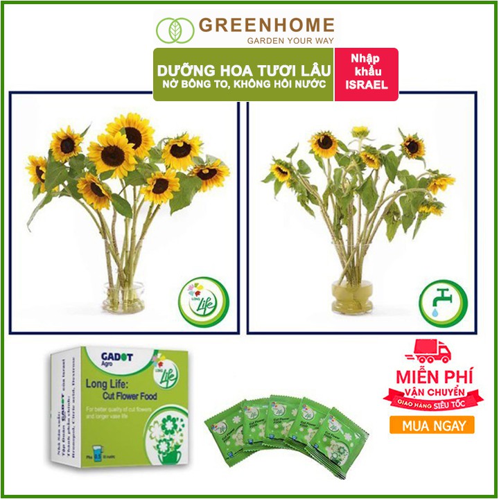 Giới thiệu 50 gói Dưỡng hoa lâu tàn Long Life, gói 5gr, hoa tươi lâu, nở bông to, không bị hôi nước |Greenhome