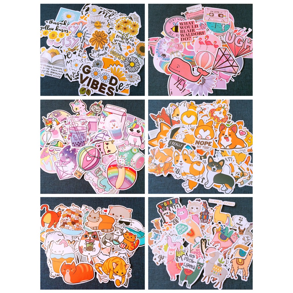 Bộ 50 hình dán sticker laptop, điện thoại, xe đạp chống nước hoạ hình