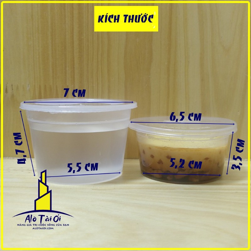 Kích thước loại 50ml: miệng 6.5cm; đáy 5.2cm; cao 3.5 cm