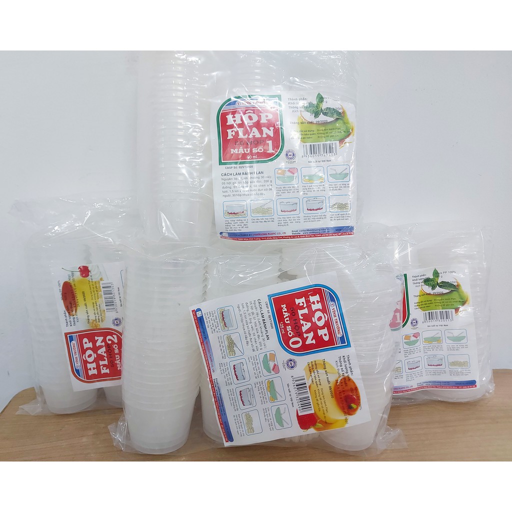 Hộp bánh flan 0: 7.5cm x 7.5cm x 5cm, dung tích 125ml