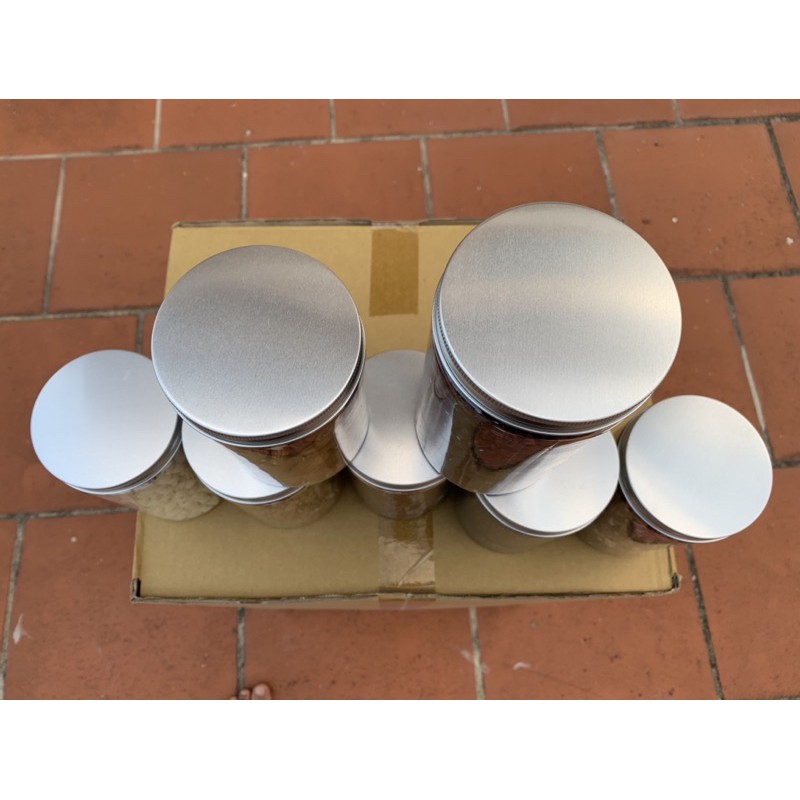 Hũ sáng bóng như thủy tinh, nắp nhôm chống thấm, cực tốt để đựng thực phẩm khô như bánh mứt, bột nghệ, matcha,..