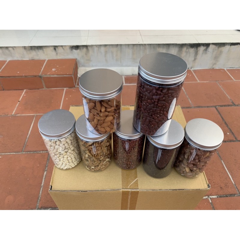 Hũ nhựa nắp nhômhiện shop có loại 500ml, 820ml và 1000ml,