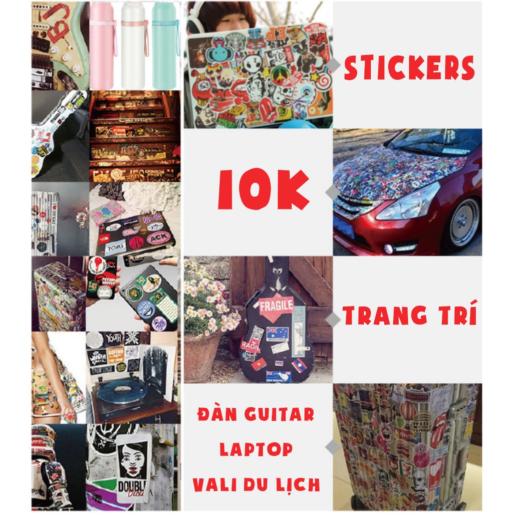 - Với hàng ngàn mẫu miếng dán sticker từ cool ngầu cho đến siêu siêu dễ thương đang chờ bạn sở hữu. Những vật dụng của bạn sẽ được khoác lên những chiếc áo mới, những màu sắc mới, những nét độc đáo và cá tính.