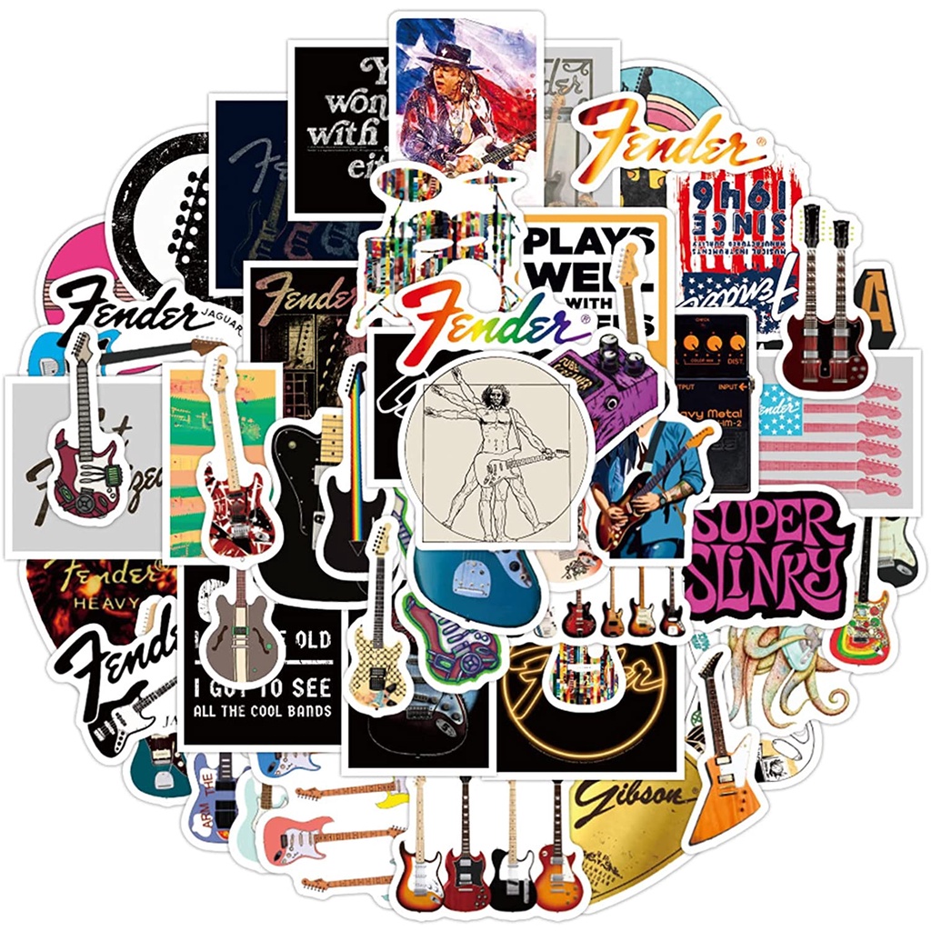 Bộ 50 miếng dán sticker trang trí đàn guitar, ukulele, nón bảo hiểm, laptop... chủ đề Fender Xe hơi