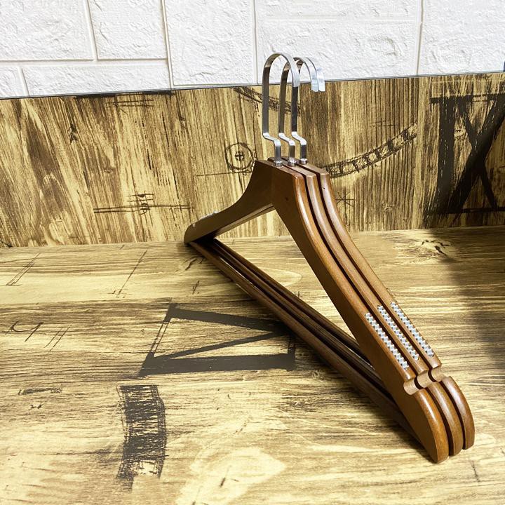 Móc gỗ chất gỗ nâu2 bên vai có đệm cao su chống trơn tuột