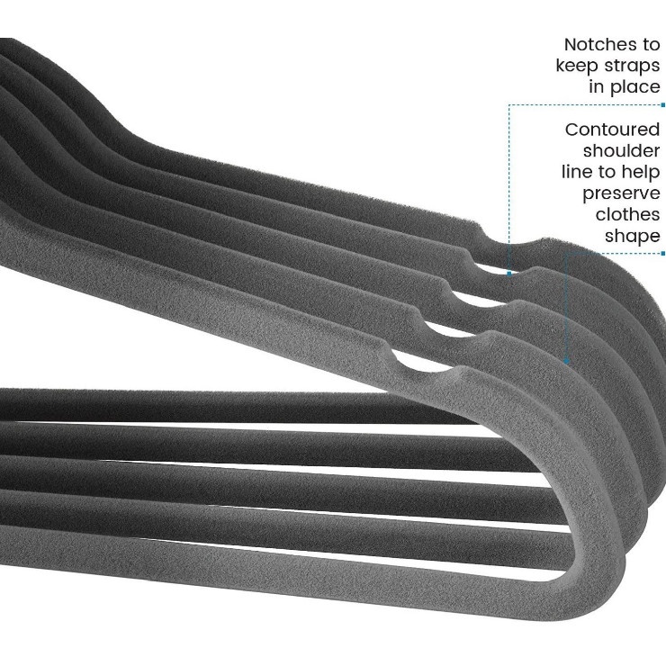 - Bề mặt nhung cao cấp giúp tăng ma sát giữa móc treo và quần áo, giúp quần áo không bị tuột ra khỏi móc treo