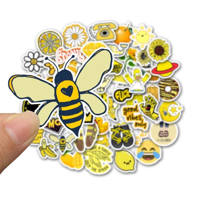 Giới thiệu Bộ 50 nhãn dán Vinyl kiểu hoạt hình đa năng phong cách retro màu vàng