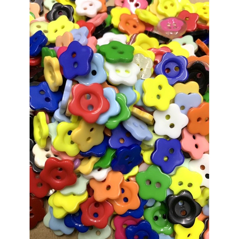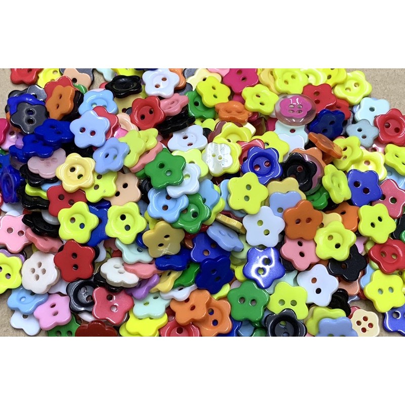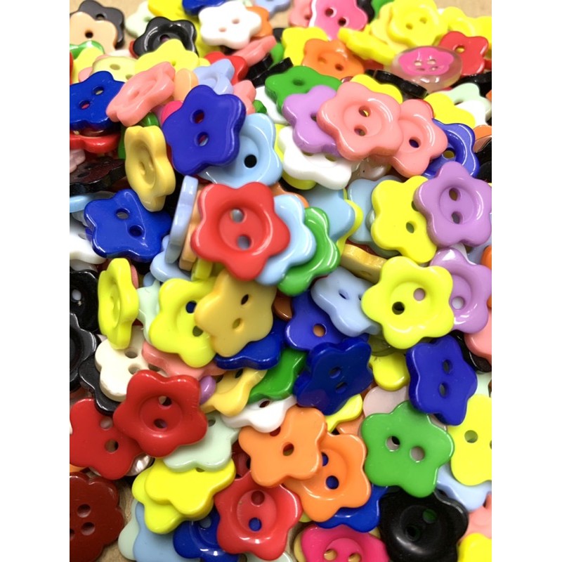 Nút hoa mai 2 lỗ nhiều màu dùng đơm áo cho bé, trang trí khung ảnh, thiệp, trang trí bóp, ví, áo, quần, đầm, váy.Giá GOONER