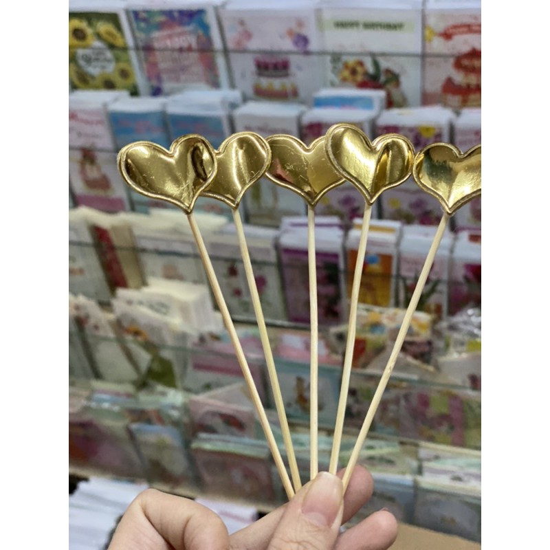 50 que cắm tim 1 màu có nhiều màu để chọn lựa dùng để trang trí bánh