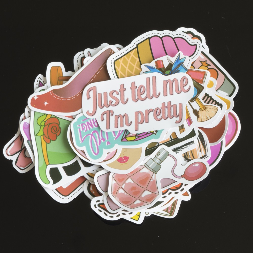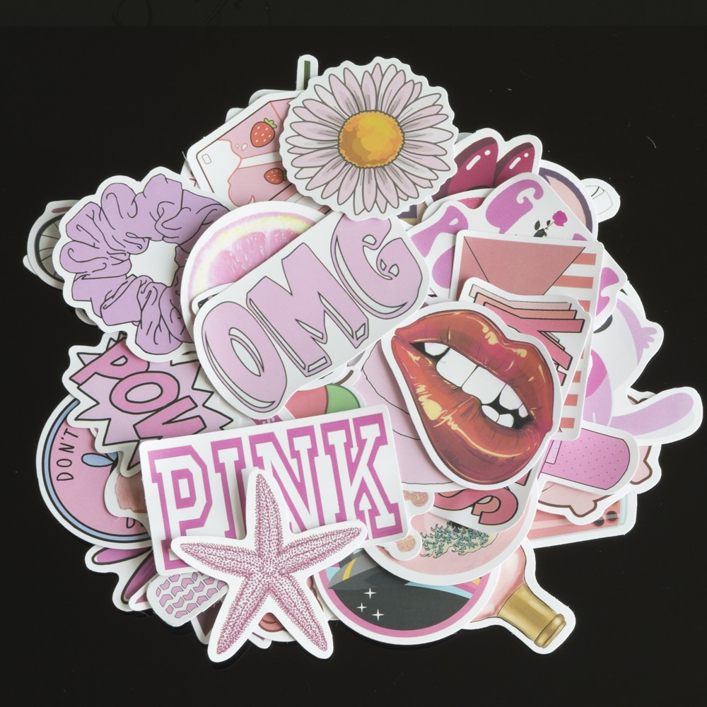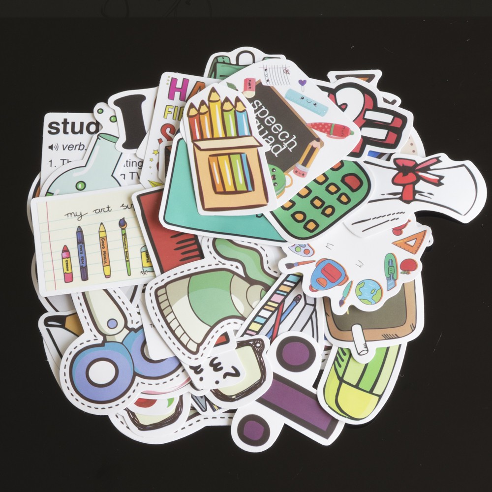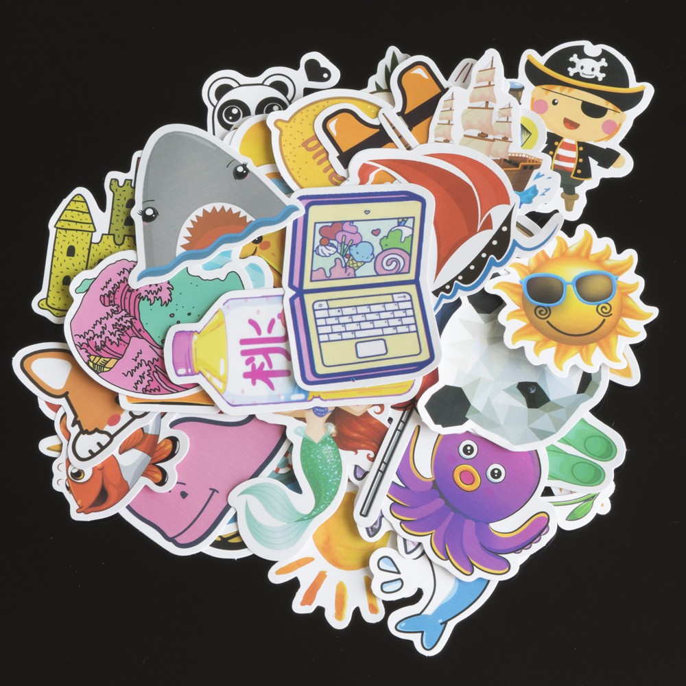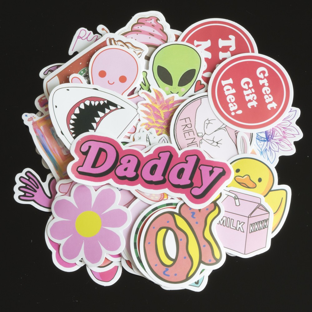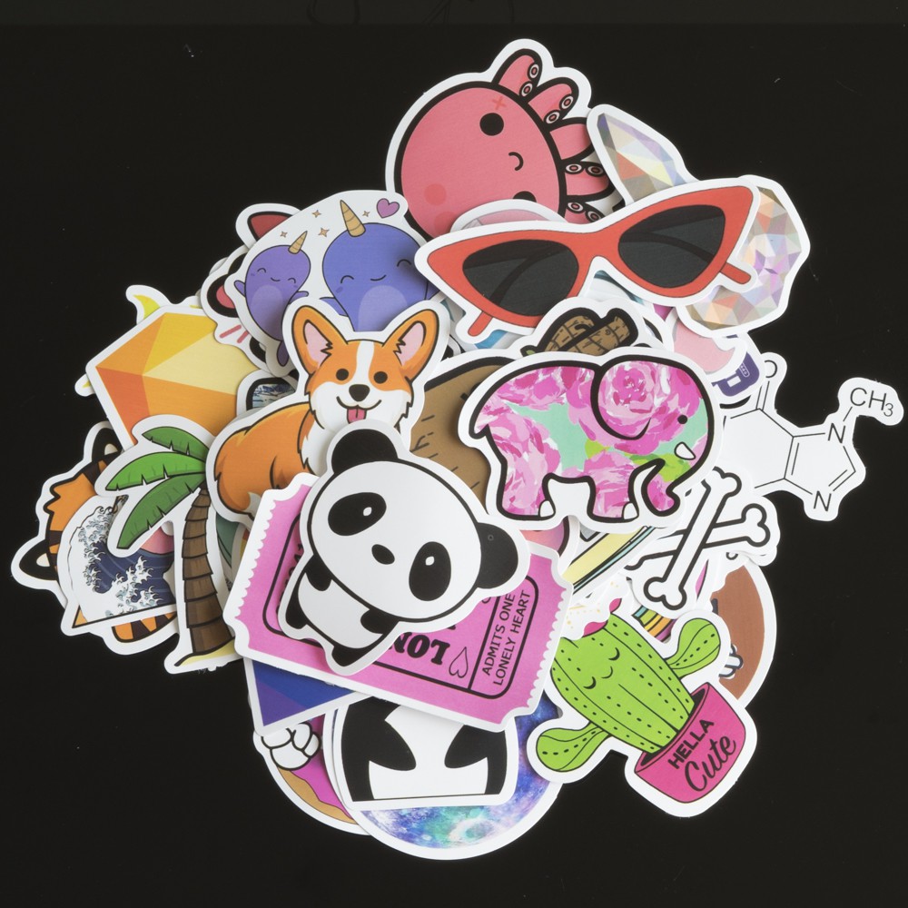 Bộ 50 sticker dán trang trí laptop, vali, xe máy, xe đạp, ván trượt, đàn guitar,đàn ukelele, mũ bảo hiểm,... cute